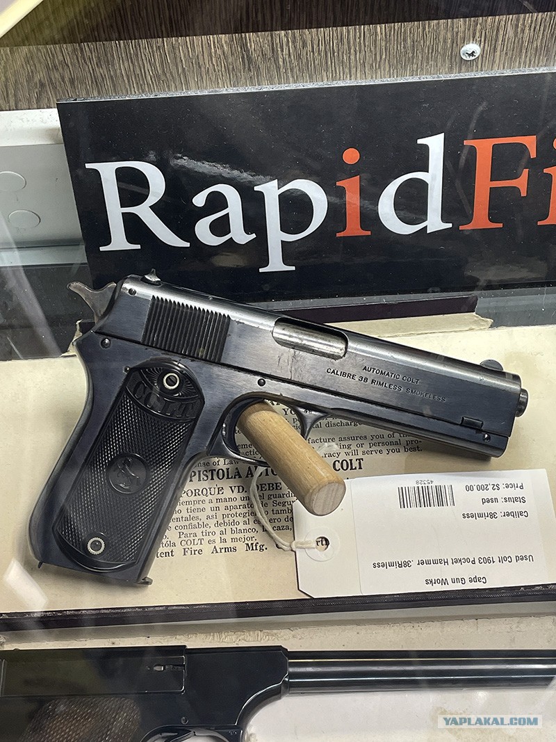 Ещё одно из творений Джона Браунинга - это Кольт 1903 года, но довольно редкая модель - этот с видимым курком. Вторая известная модель того же года называлась Hammerless - со скрытым курком, для скрытного ношения и чуть меньшего размера. Так вот вторых на рынке больше, т. к. сделали их много в своё время. А вот эту модель ещё нужно поискать. Ну потому и цена $2,200.