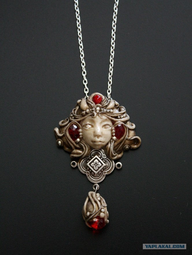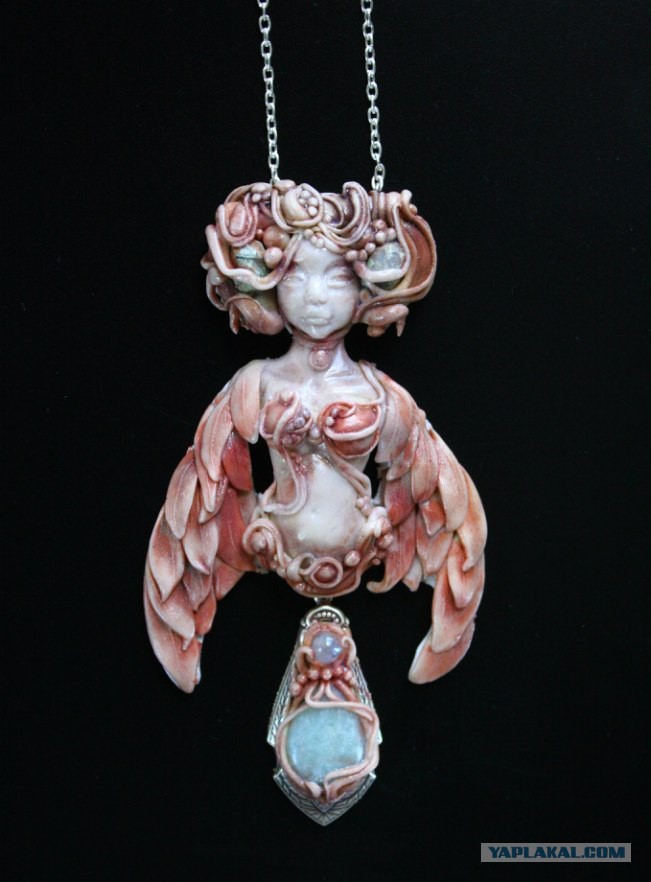 Или еще пример другой подруги, работы с поделочными камнями и полимеркой