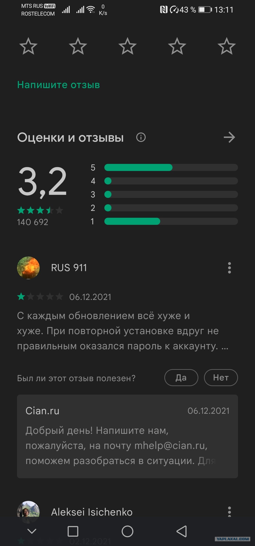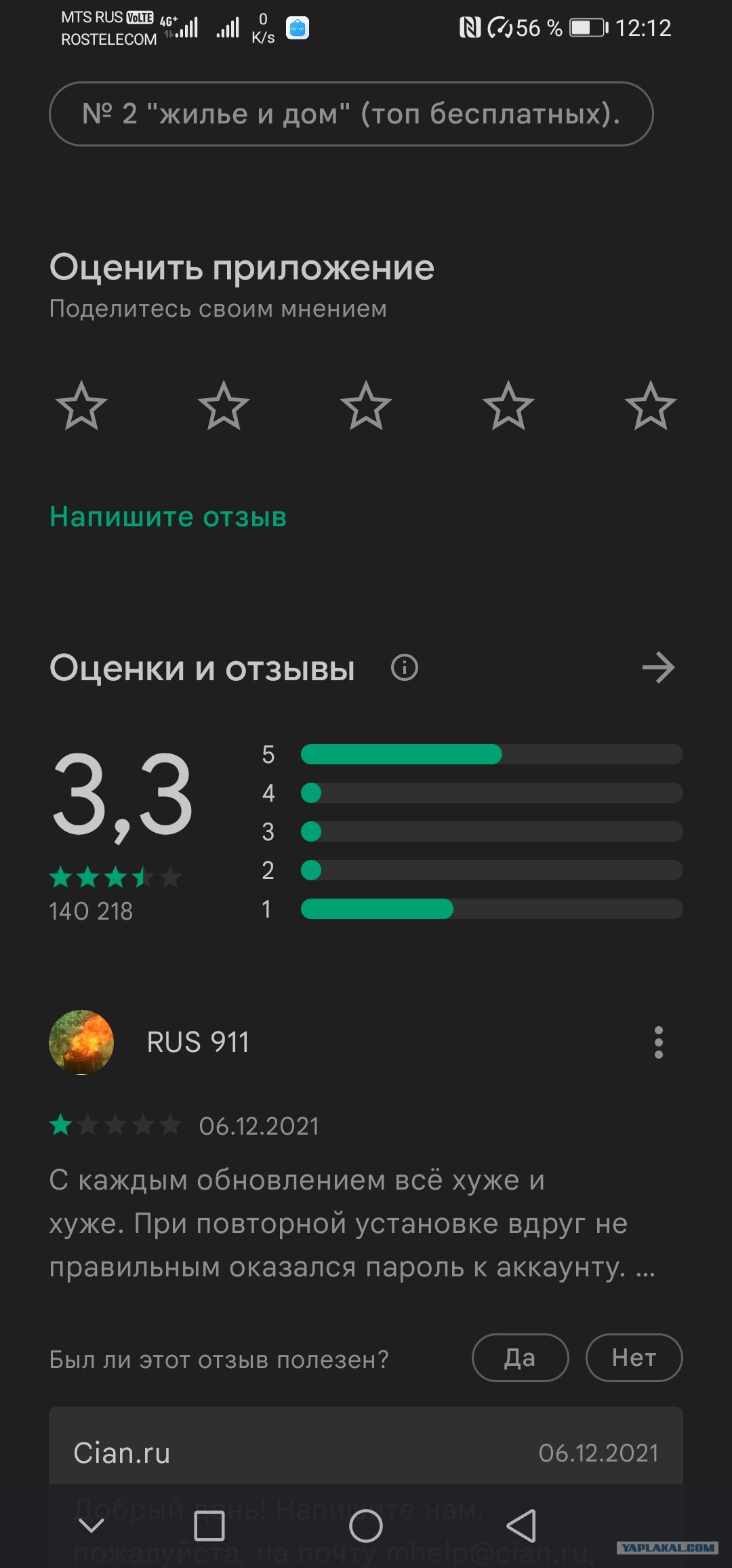 Я думаю если на главную попадёт, то ЦИАН сегодня будет иметь рейтинг чуть выше 1.