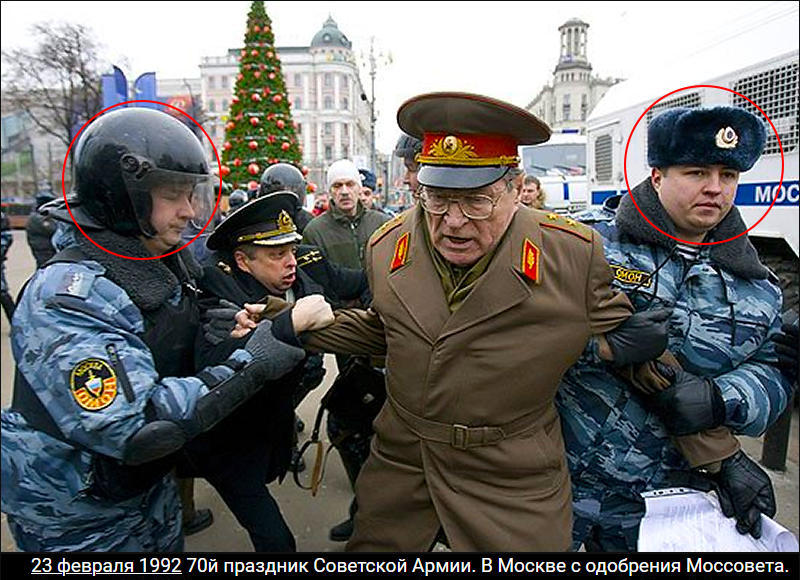 23 февраля 1992г, праздник Советской Армии, традиционный 70 лет. Официально одобрен Моссоветом в Москве. Именно Моссовет был властью, а не презики и мэры.