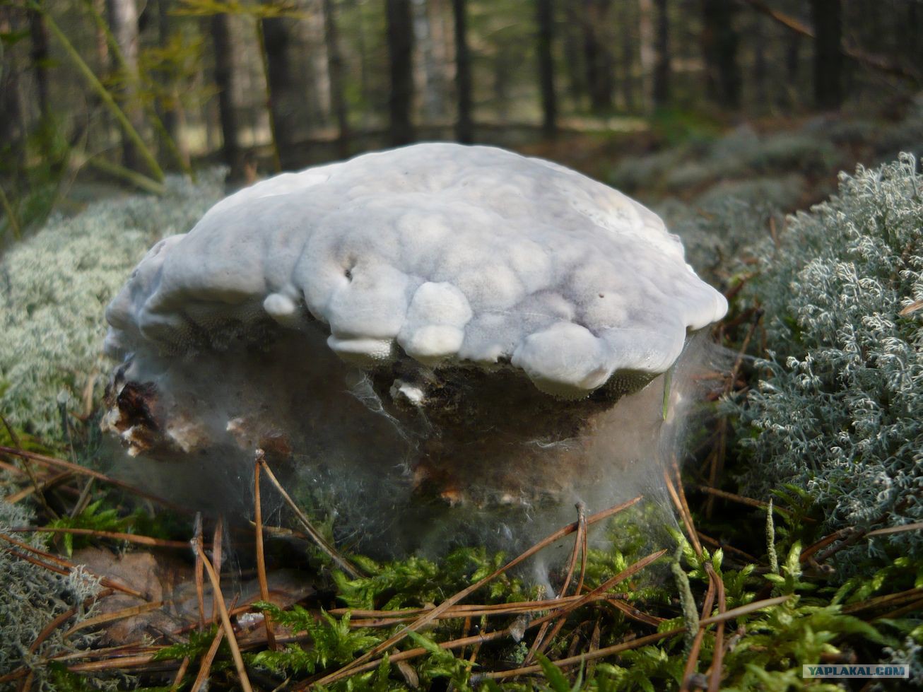 Какой-то гриб, снизу опутан типа паутины чем-то. Встретилось 3 штуки.