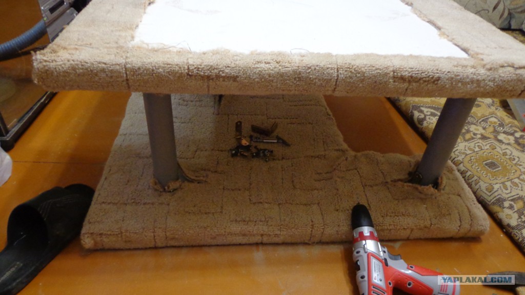Бичевки не хватило, поэтому две задние стойки обтянул ковролином.