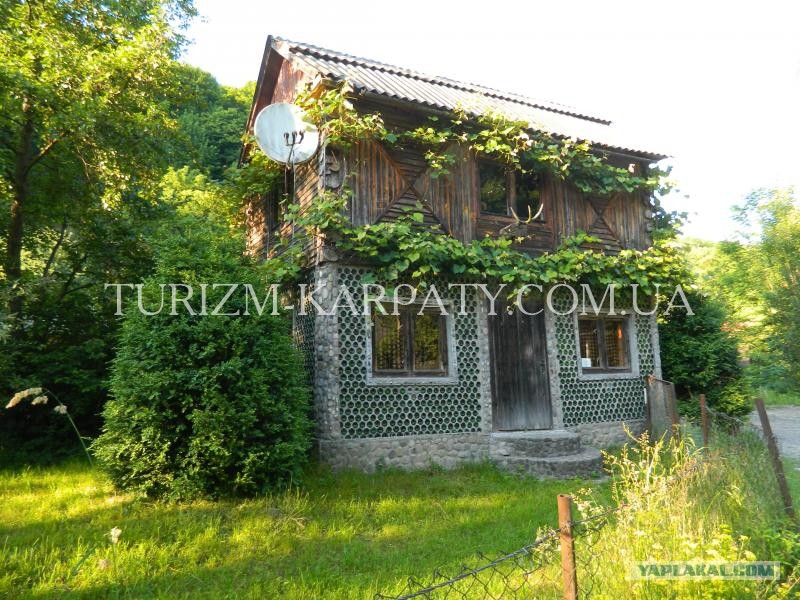 Если выложить горлышком наружу и налить в них воды, то в летнюю жару в таком домике будет холодильник idea.gif
