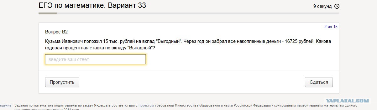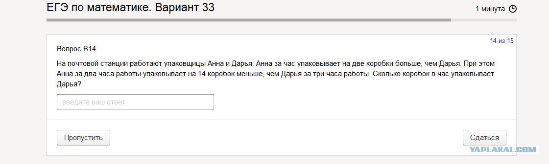 Дайте мне пару слов. Напомнил мне Тс про это дело и я вспомнил что есть же онлайн егэ тесты. Решил глянуть, попал на яндекс тестирования. Яповчане вы ДОЛЖНЫ это видеть. Я взял 3 теста наугад, и сделал скриншоты из начала -середины и конца каждой цепочки. Вот смотрите. Итак егэ - раздел математика. Об окончании сообщу.