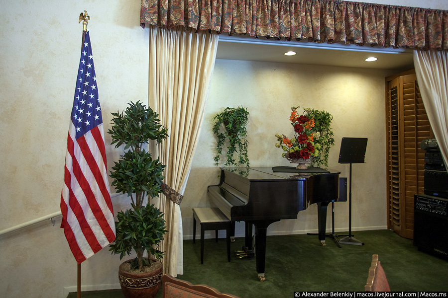 А по вечерам старики собираются в обеденном зале, где играют на рояле и поют.