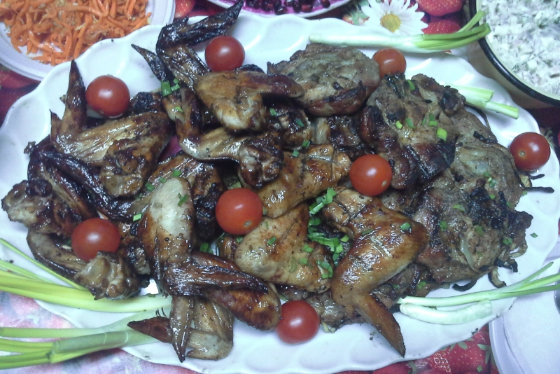 А я люблю в новогоднюю ночь пожарить на углях стейки с крылышками маринованными... ))