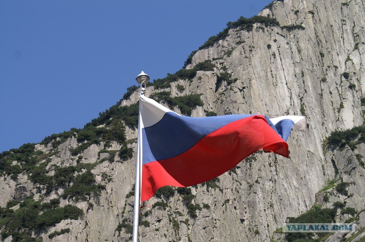 Вообще, русский флаг на фоне Альп смотрится колоритно