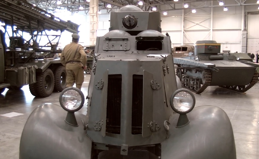 Особняком на выставке выделялся вот этот броневик, который представлял собой еще более раннюю эпоху. Такие машины принимали участие еще в первой мировой и гражданской войне.