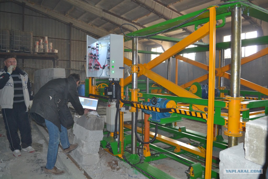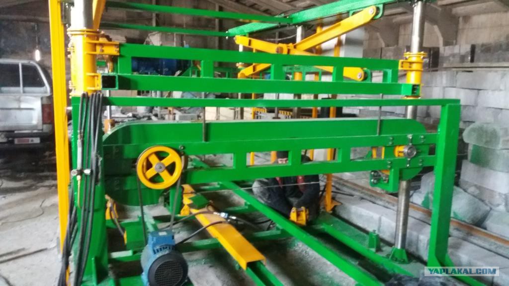 Массив пенобетона подкатывается к установке и автоматически захватывается. В процессе перемещения к месту распила срезается (выравнивается) верхушка. далее тележка с массивом автоматически фиксируется и производится распил в продольном направлении. После чего подкатывается следующий массив, который занимает место первого а первый в свою очередь переезжает на место , где распиливается в поперечном направлении. ну как то так. наверное видео надо было снять но как то не до этого. Смысл поста - нужно стремится к большему. Хотя если есть вопросы по технической реализации или вообще вопросы по производству пеноблоков или газоблоков, с удовольствием отвечу.