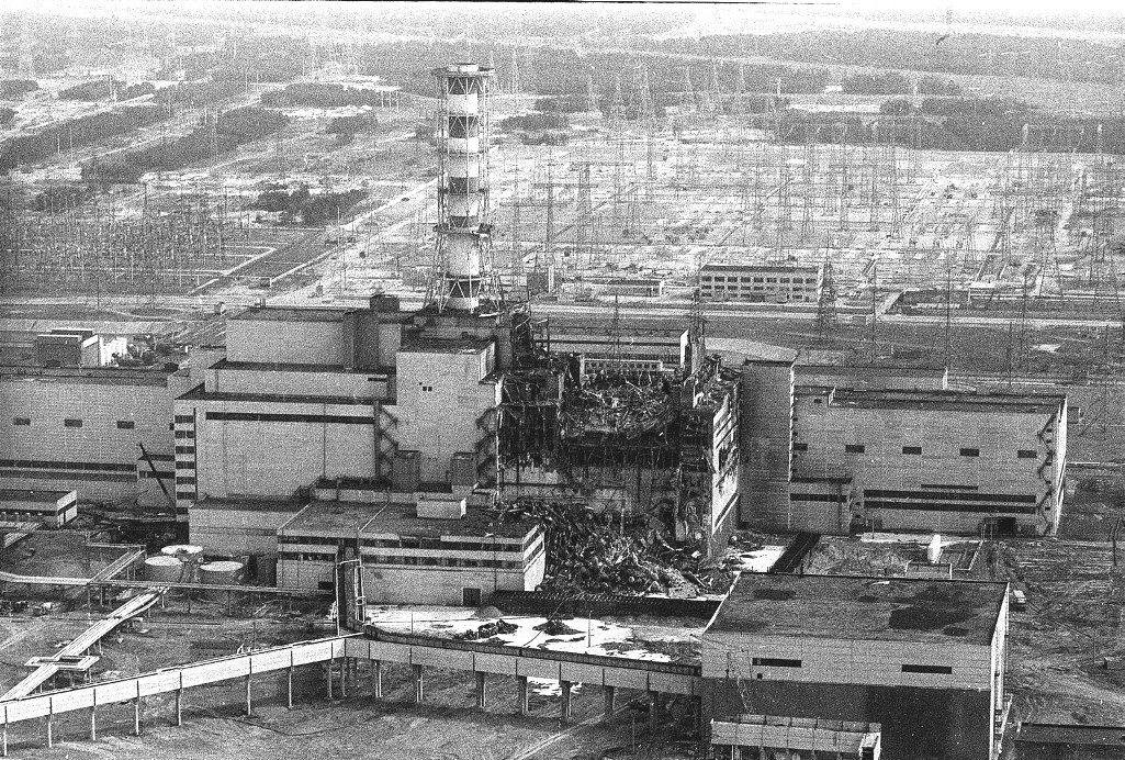 27. Это вид на четвертый энергоблок, начало мая 1986-го, реактор даже ещё чуть дымился.