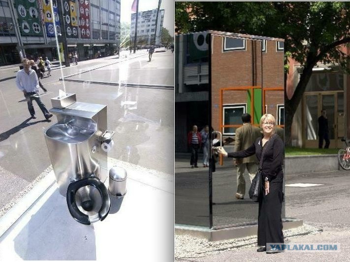 Мне понравились зеркальные уличные кабинки. Где-то в Европе ставят такие. Изнутри прозрачная, а снаружи - зеркало.
