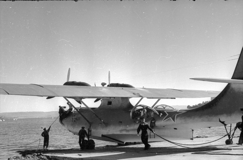 Летающая лодка PBN-1 Nomad из состава морской авиации Тихоокеанского флота во время обеспечения высадки советского десанта в Порт-Артуре; август 1945-го года