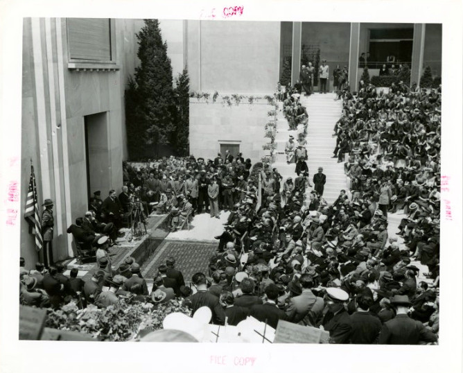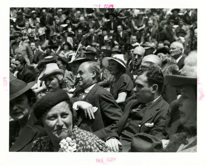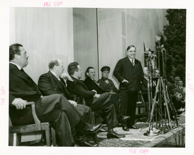 28. Мэр Нью-Йорка Фиорелло Ла Гардия выступает на церемонии открытия.