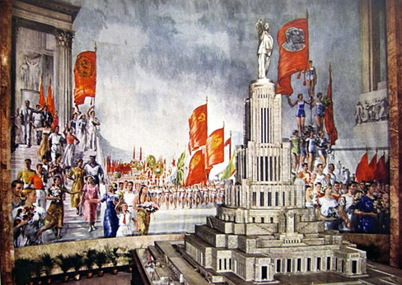 Не успевали американцы подивиться бесплатной советской медицине, как их уже ждал следующий сюрприз в виде зала посвященного социалистическому градостроительству. Тут можно было поразиться гигантскому макету Дворца Советов, выполненному в масштабе 1:75, весившему 20 тонн, достигавшего 4 метров в высоту и состоявшего из 117 000 деталей.