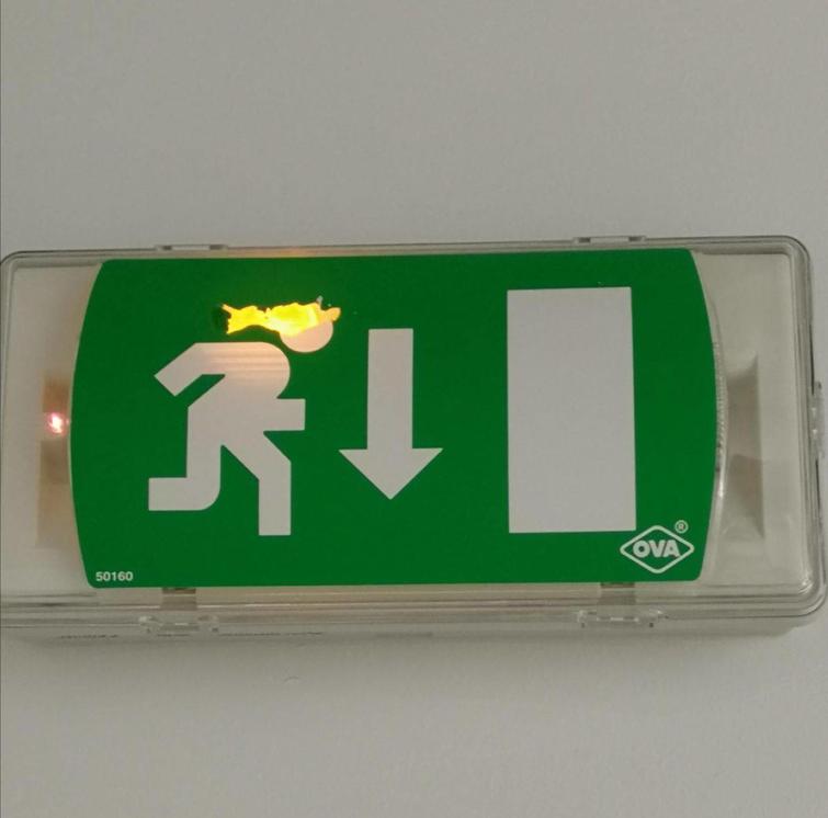 Этот знак аварийного выхода выглядит так, словно кто-то бежит с горящей головой