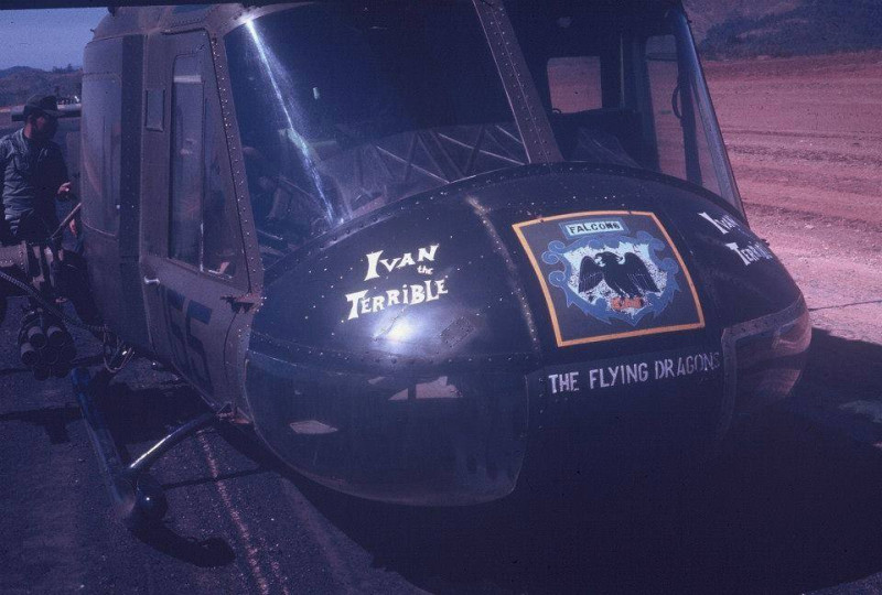 Вертолет Хьюи с именем "Иван Грозный" на базе в Буонметхуот, Вьетнам, 1967 год.