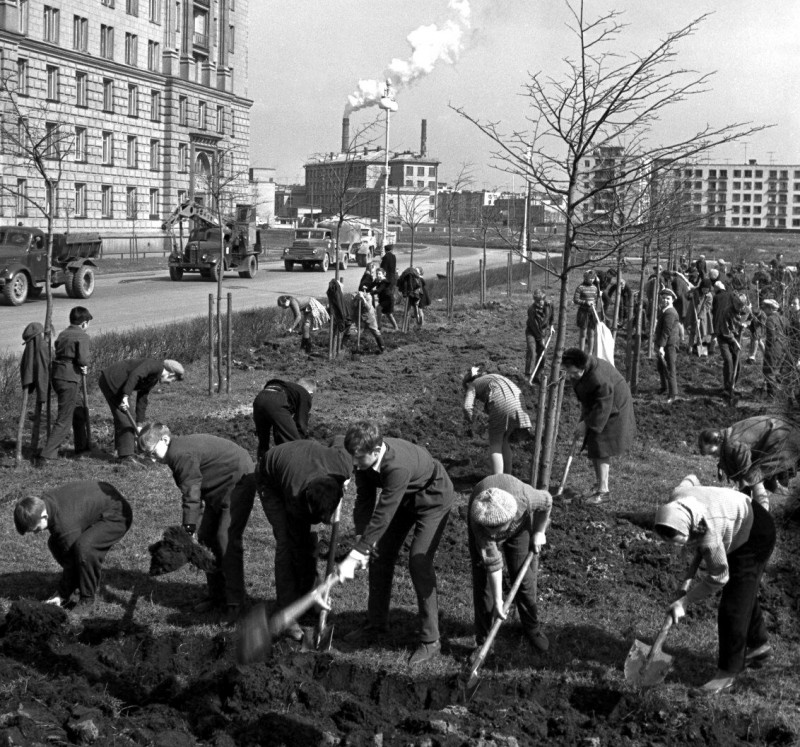 Субботник по благоустройству города. Ученики и учителя московской школы №456 сажают деревья в будущем сквере