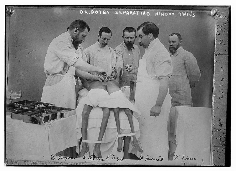 Первая успешная операция по разделению сиамских близнецов. Проводил Доктор Дойен в 1910-м году.