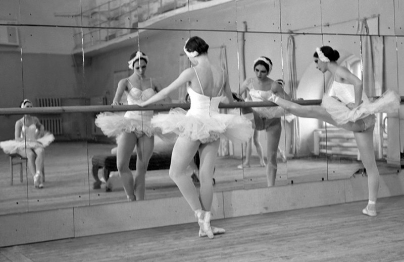 Балерины на разминке в Оперном театре. Одесса, УССР, 1972 год.