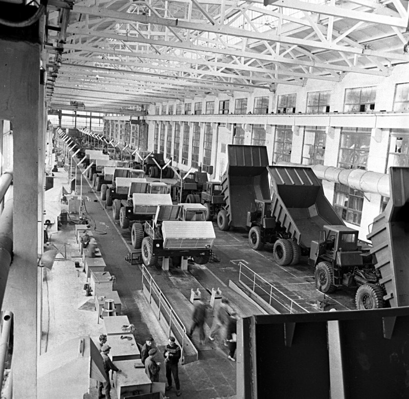 Белорусский автомобильный завод. Главный конвейер. Жодино, 1966 год