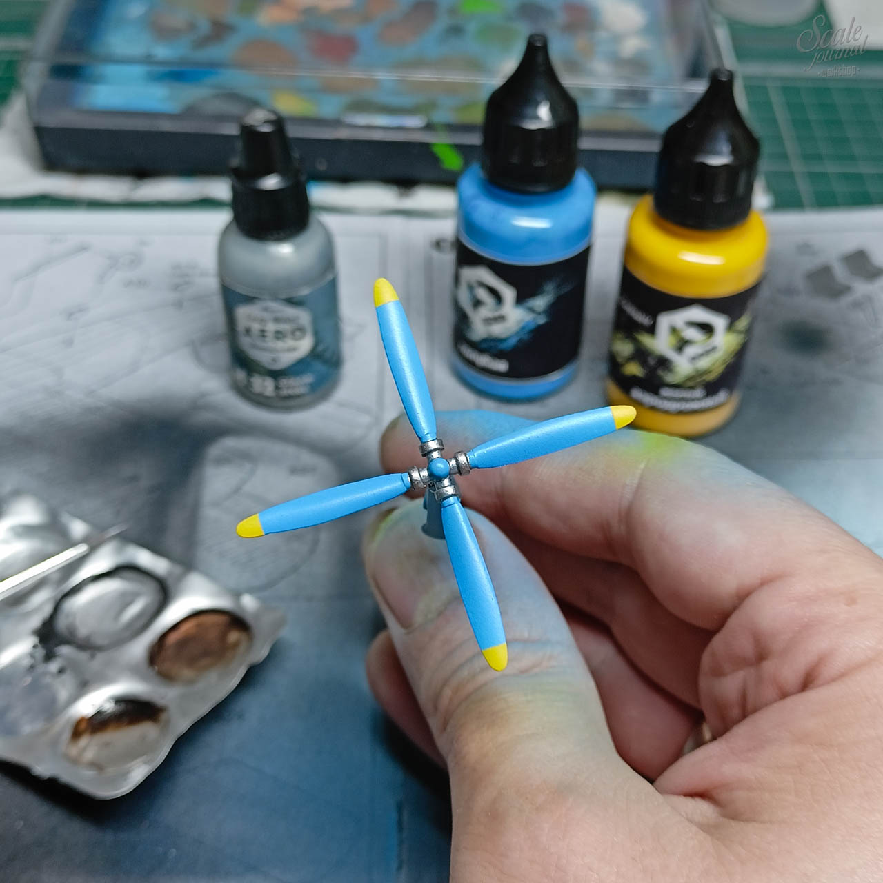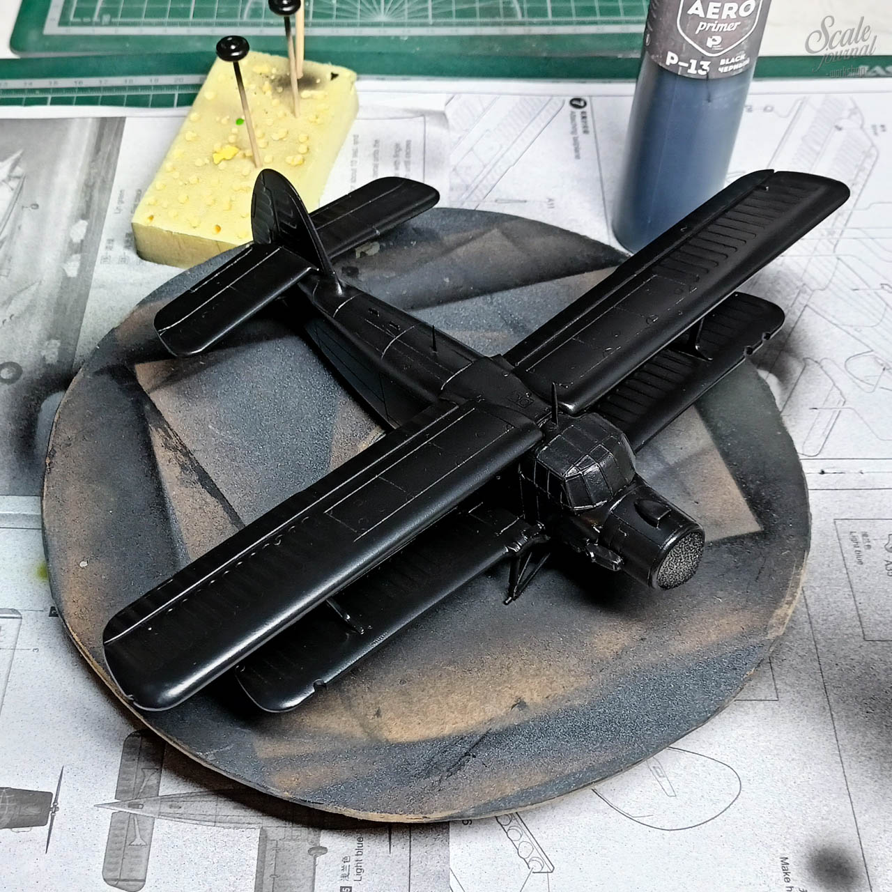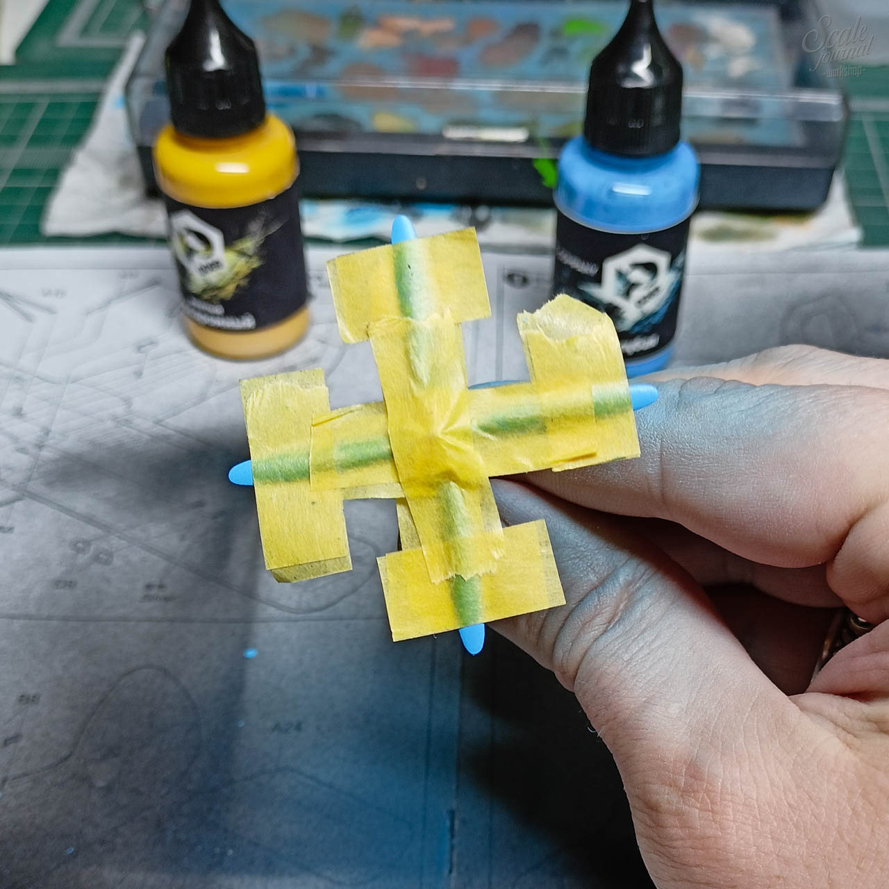 Задул низ самолета краской АМТ-7 голубой. И после высыхания закрыл масками для нанесения следующего цвета