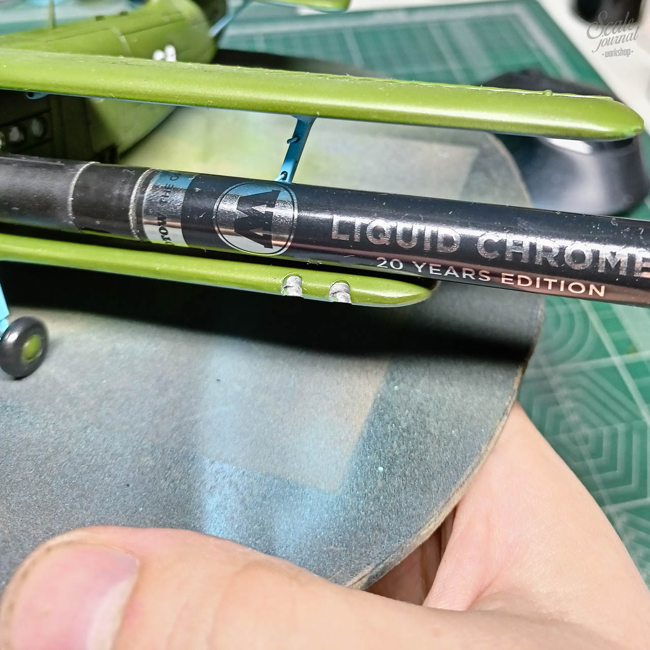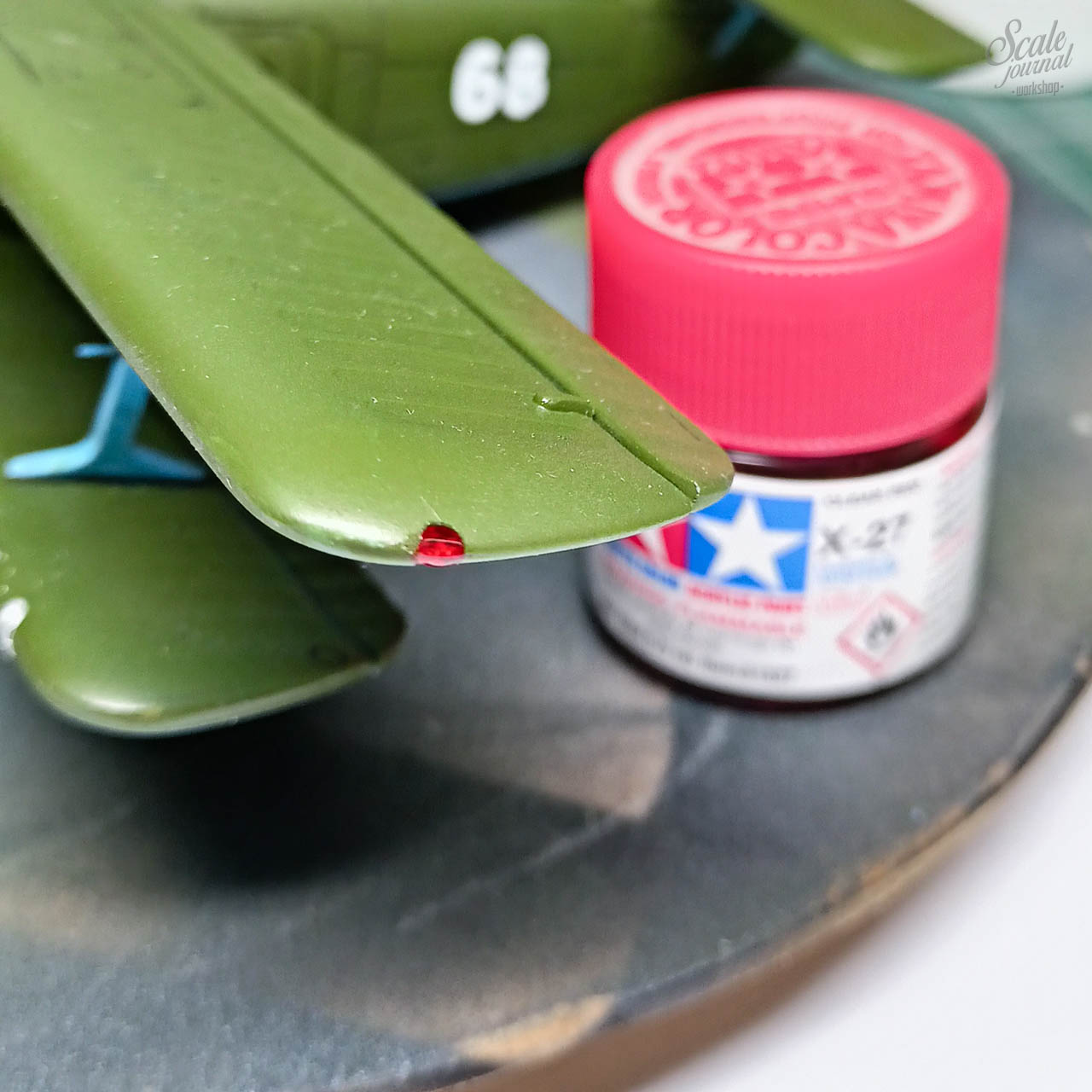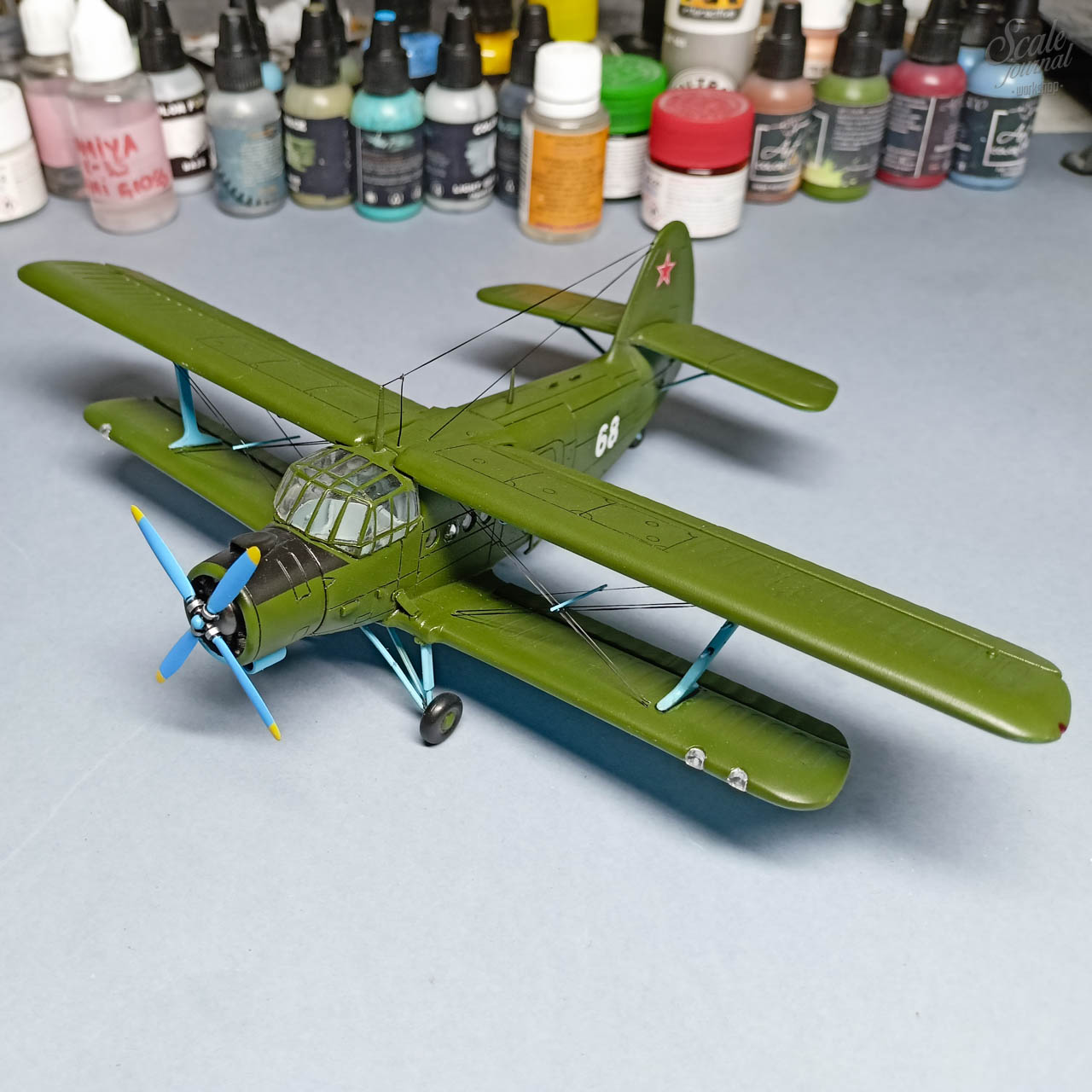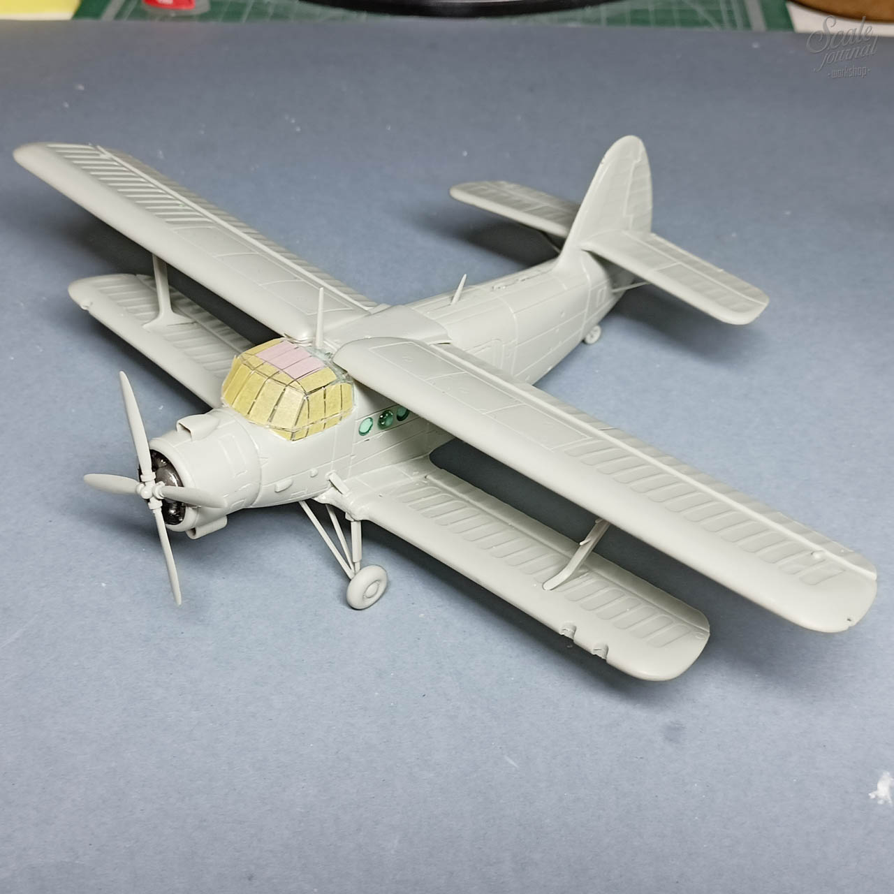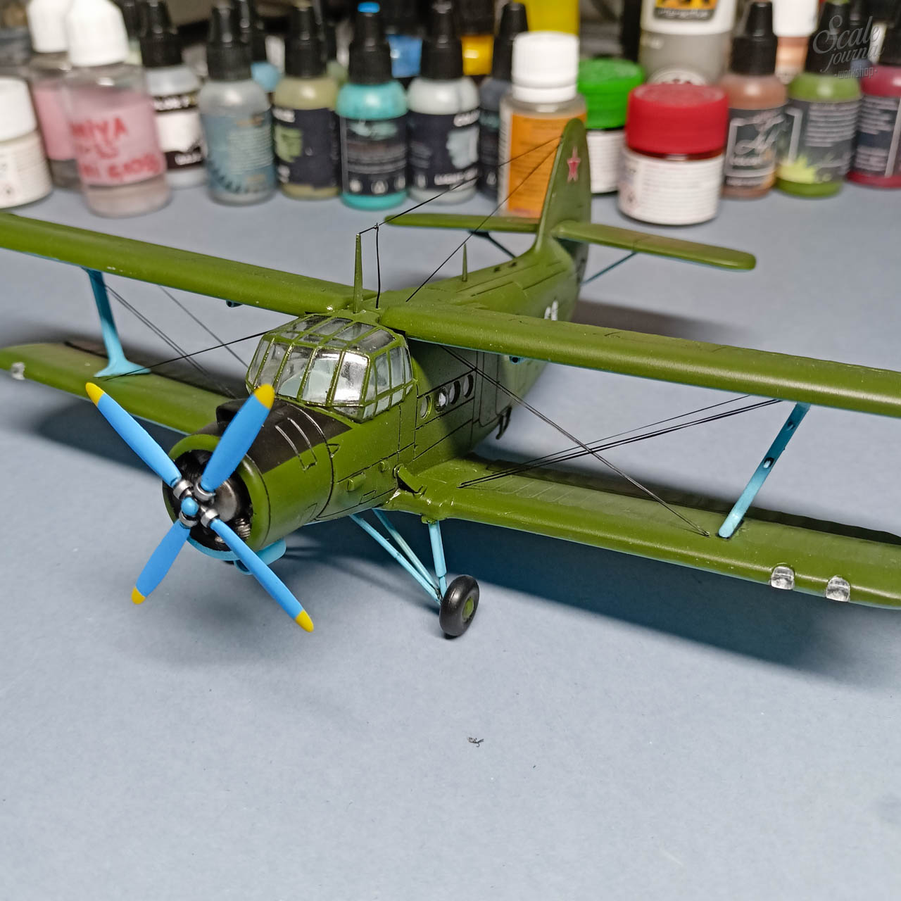 Потом нанес базовый АМТ-4 зеленый на оставшуюся часть самолета и снова поработал масками в районе капота двигателя.