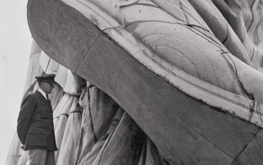 Сравнение статуи Свободы и человека вблизи. Снимок сделан в 1937 году.