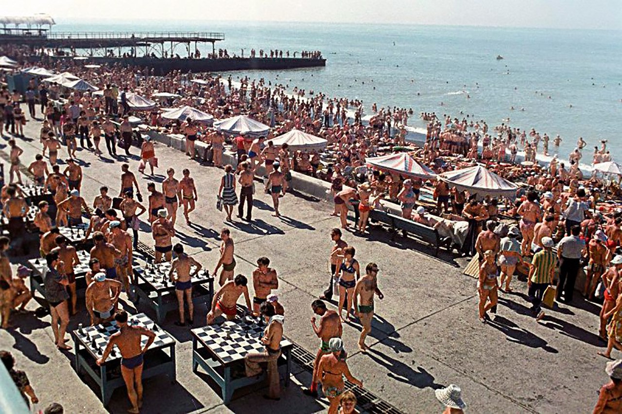 В Сочи на городском пляжу. 1978 г. Фотограф Анатолий Бочинин