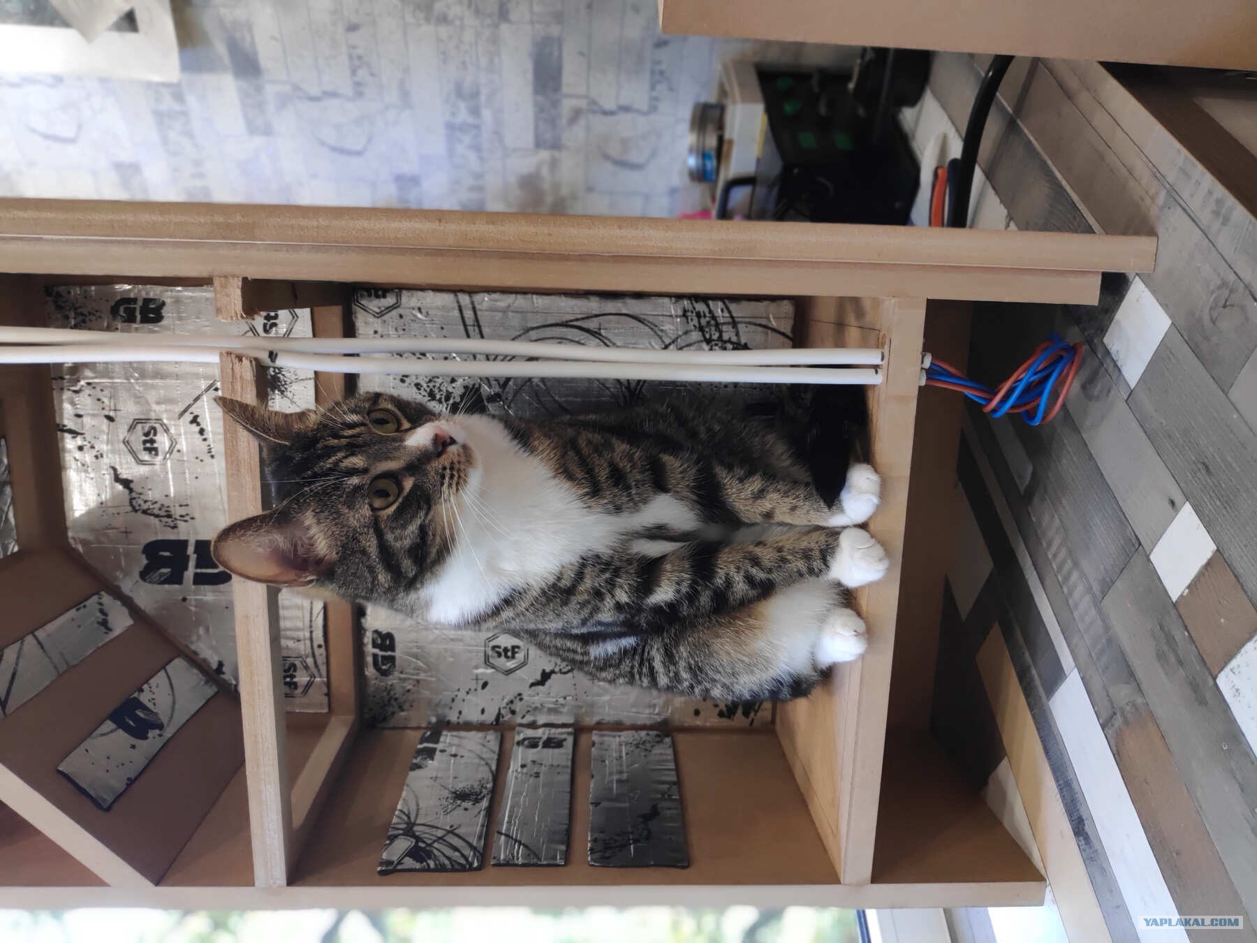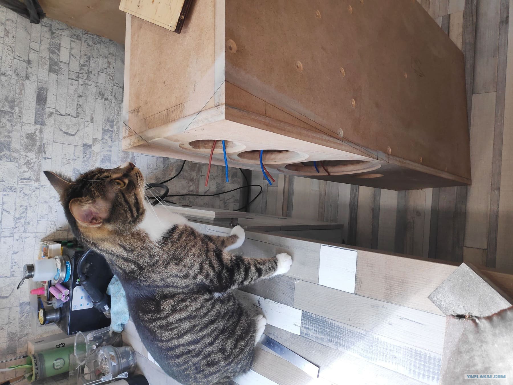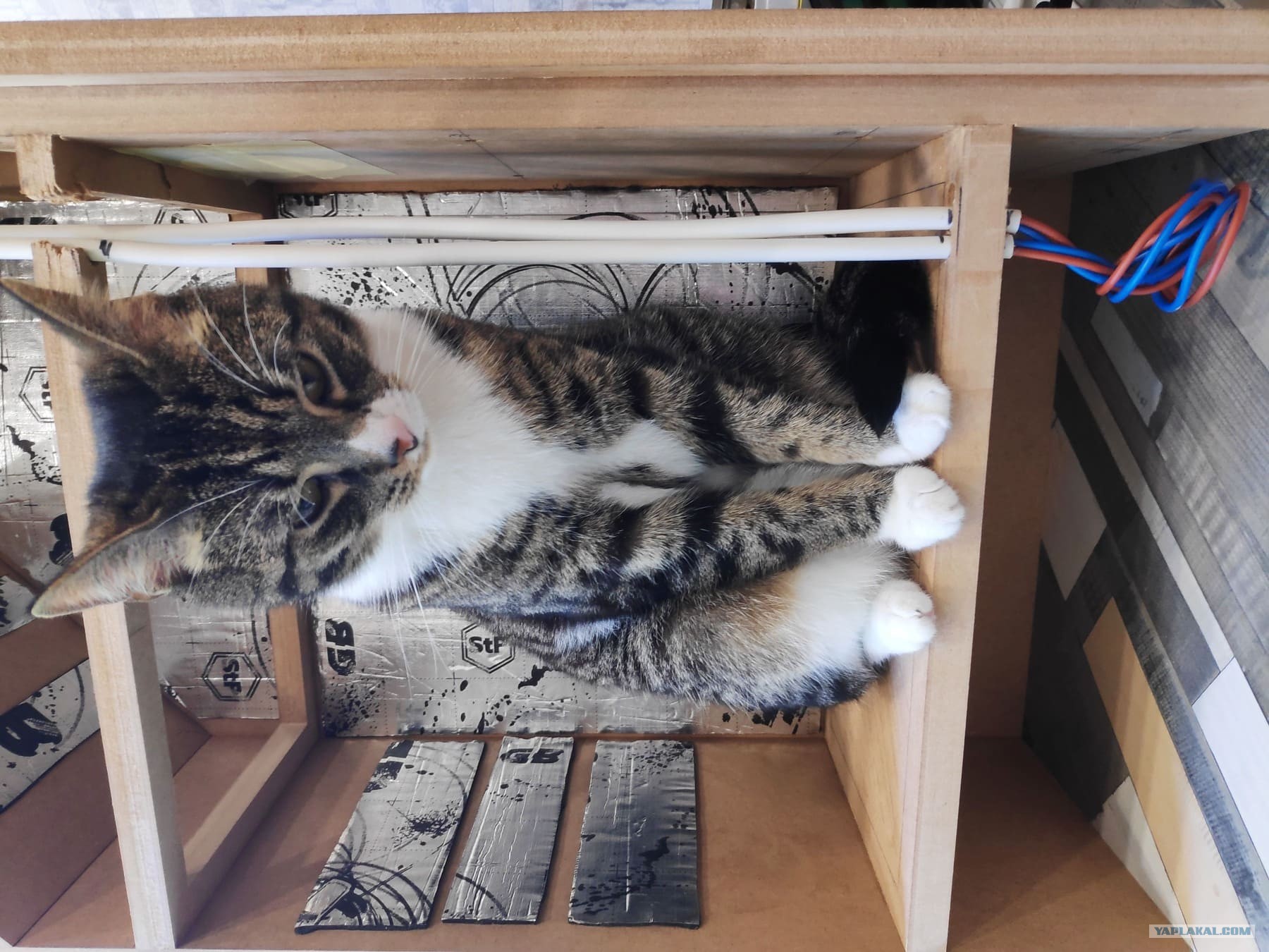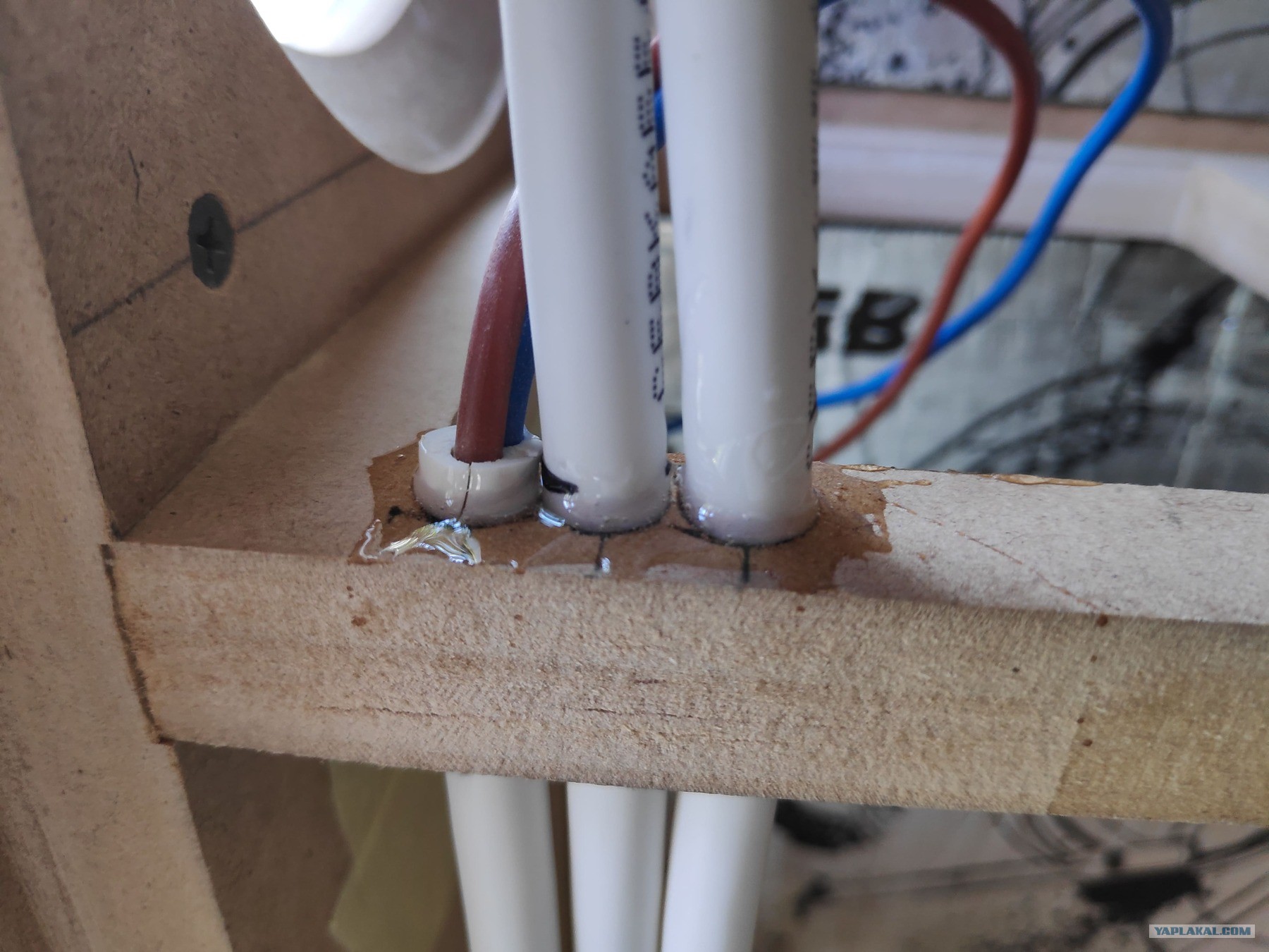 Далее началась внутренняя разводка проводов , решил сделать так. Акустические провода стоят непомерно дорого, так что взял обычный провод 2*2.5
