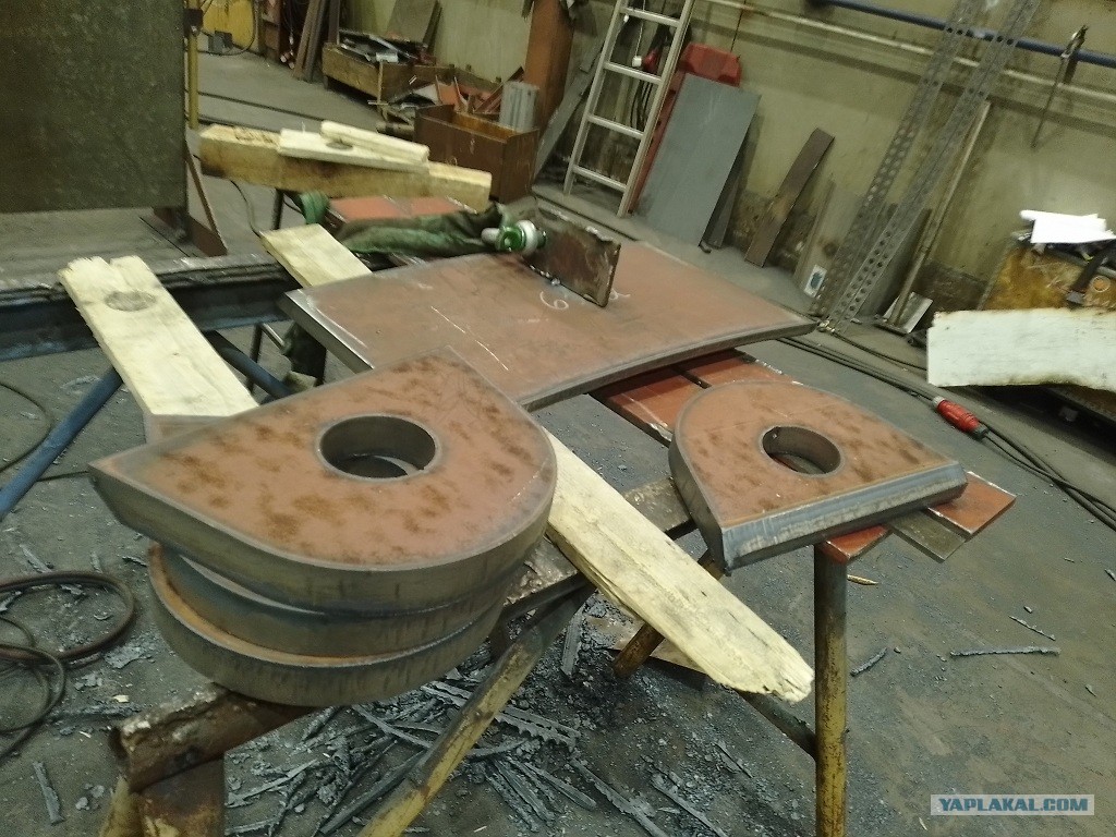фундамент поднимем , поставим на опоры и заварим потолок опорного кольца.