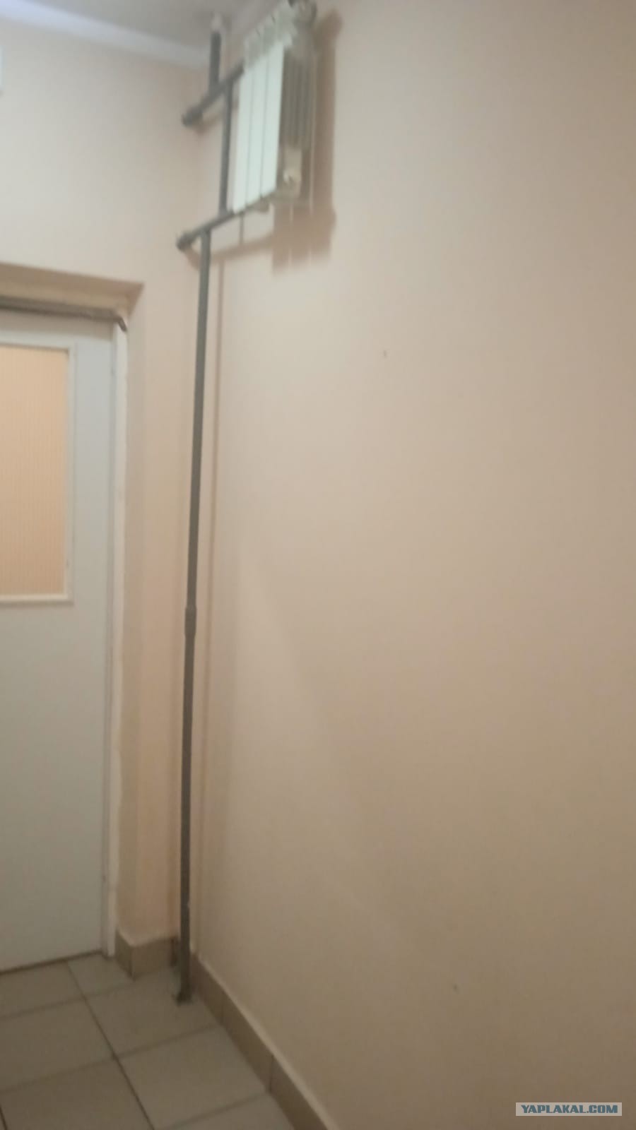 Верхнее размещение радиаторов отопления обусловлено противопожарными нормами для путей эвакуации.