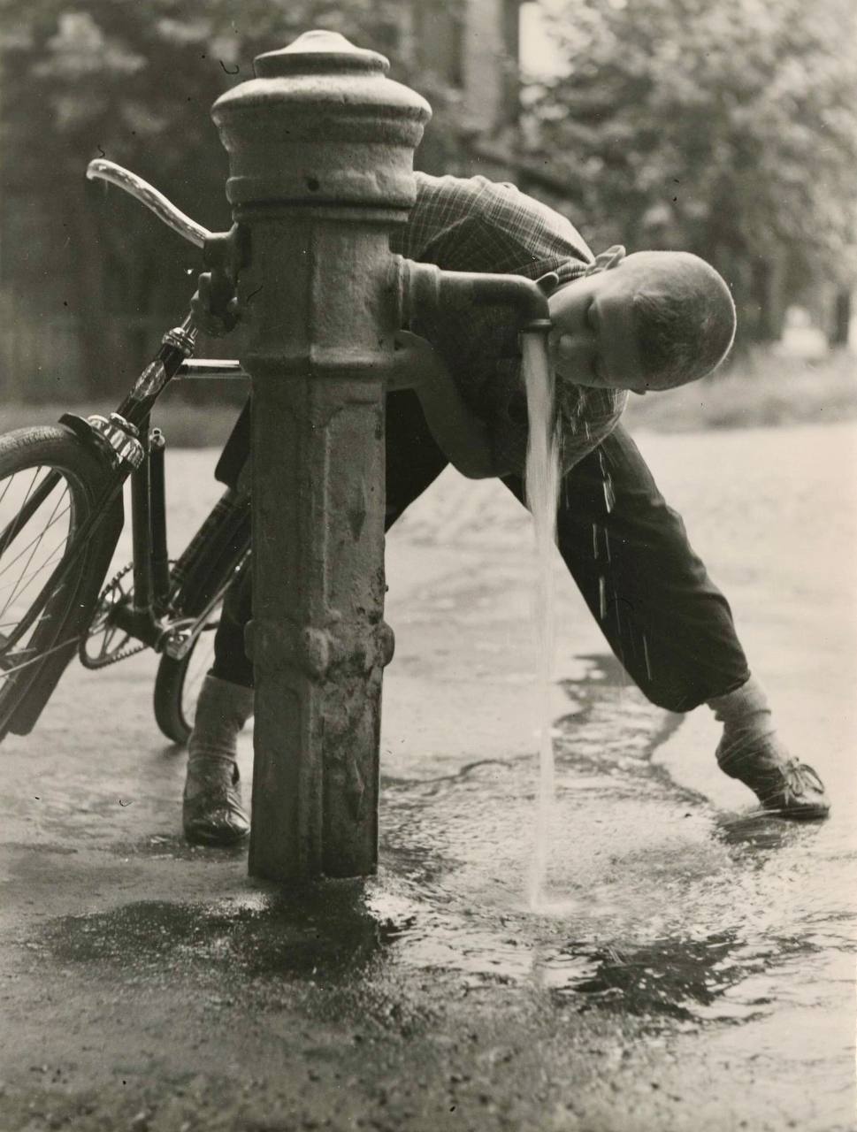 Эх, красотка! Судя по эмалированному ведру, бежит к бочке за водой. Там топорик где-то рядом - раздолбает намёрзший лёд, зачерпнёт - и бегом назад.