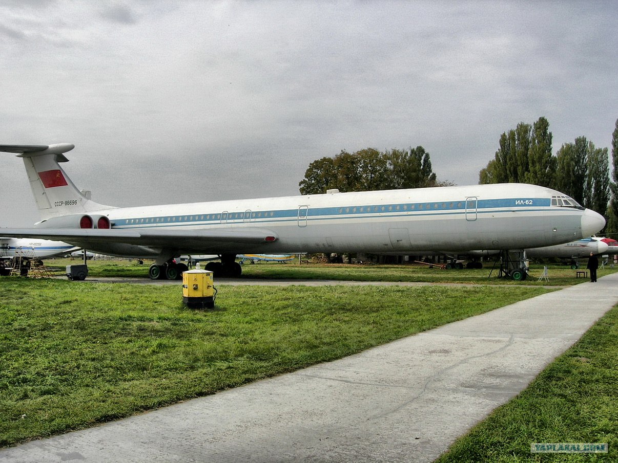 38. Ил-62 принадлежит ко второму поколению советских дальнемагистральных лайнеров. Он был создан в начале 60-х годов, и довольно значительно отличался от других самолетов Ильюшина: имел стреловидное крыло, Т-образное оперение и четыре двигателя в хвостовой части, которые имели реверс тяги для уменьшения пробега во время посадки. Он обладал такими же экономичностью и дальностью, как Ил-18, брал на борт вдвое больше пассажиров, был более скоростным и комфортабельным, но имел проблемы с надежностью. Лайнеры Ил-62 эксплуатировались на самых протяженных маршрутах: в США, Канаду, на Кубу и т.п.