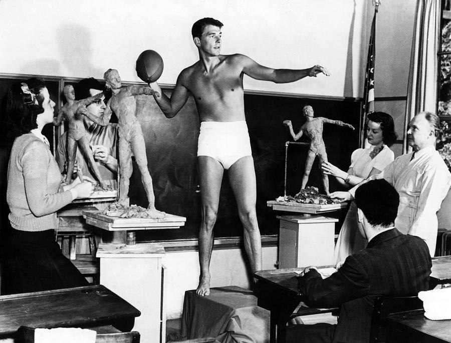 Будущий 40-й президент США Рональд Рейган подрабатывает натурщиком, Университет Южной Калифорнии, 1940 год.