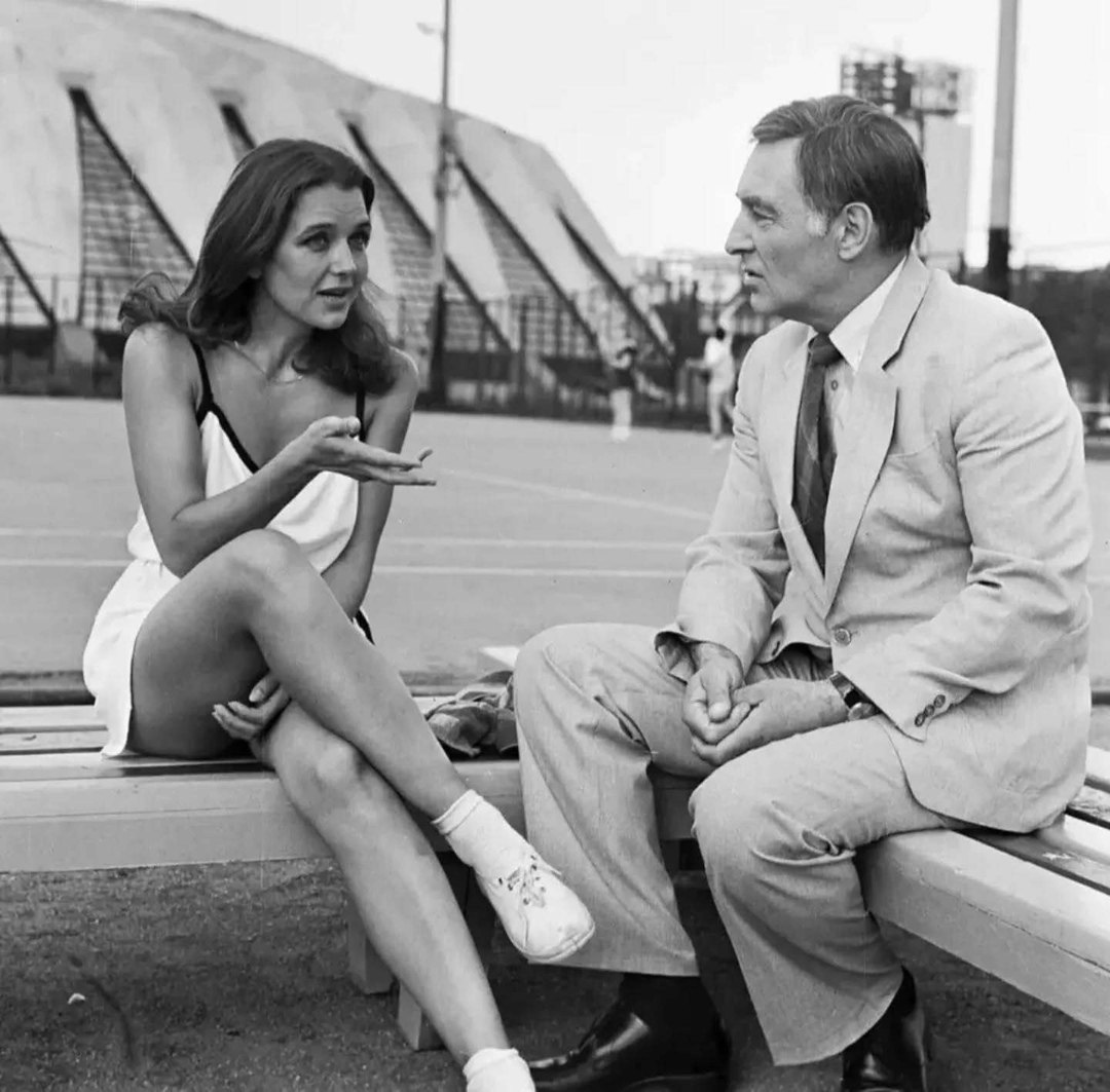 Ирина Алферова и Вячеслав Тихонов на съёмках фильма ТАСС уполномочен заявить, 1984 год.