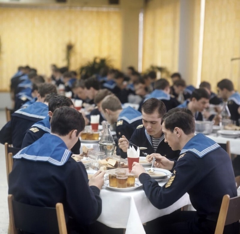 30 В столовой. Высшее военно-морское училище им. М. В. Фрунзе в Ленинграде. 1972 год.