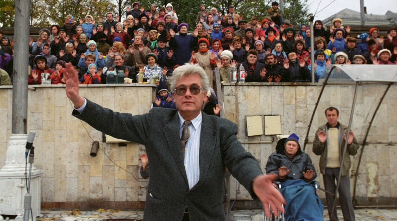 Экстрасенс Аллан Чумак «заряжает» воду в плавательном бассейне «Чайка». 1992 г. Фото: Роберт Нетелев.