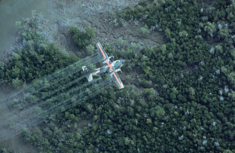 28 Самолет ВВС США UC 123K распыляет «Эйджент Оранж» во время войны во Вьетнаме.