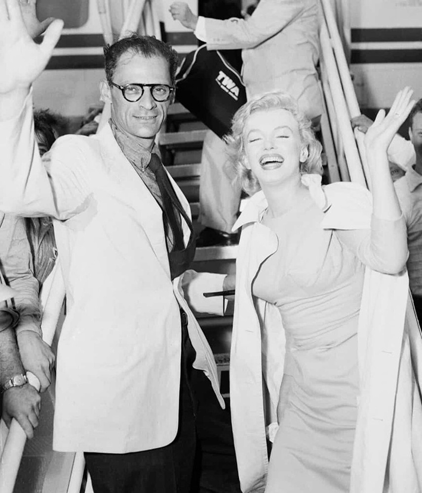 37 Молодожёны Мэрилин Монро и драматург Артур Миллер перед посадкой в ​​самолет для вылета в Англию, где они планировали провести медовый месяц, 13 июля 1956 года