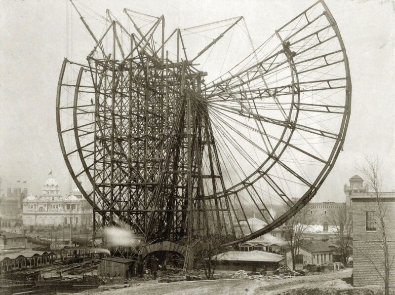 31 Строительство самого первого колеса обозрения. Чикаго, 1893 год.