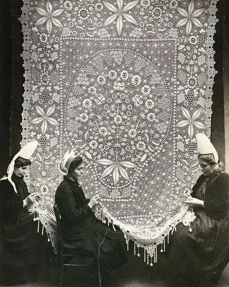 46 Три кружевницы за работой. Бретань, Франция, 1920 год