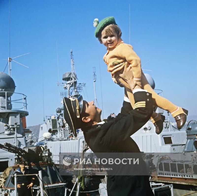 50 Офицер Николай Ильев после похода играет со своей маленькой дочерью, 1976 год. Фото Михаил Кухтарев. сточник: РИА Новости.
