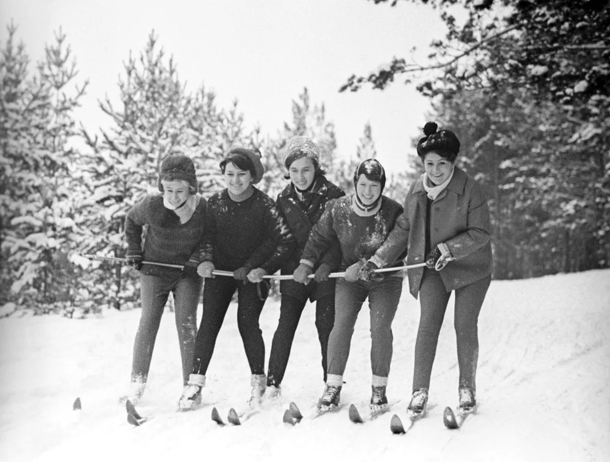34 Ткачихи Улан-Удэнской тонкосуконной фабрики во время отдыха на турбазе "Улан-Удэ". Январь 1970 года.