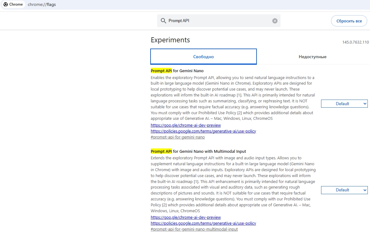 Prompt API тоже был найден на моем ноуте с Windows 10.