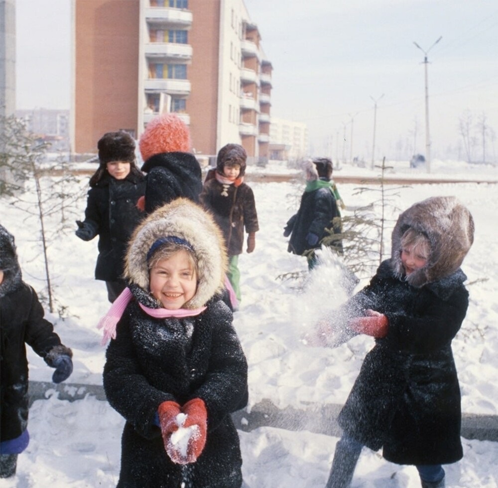 45 Дети играют в снежки в поселке Новый Ургал, Хабаровский край, 1979 год.