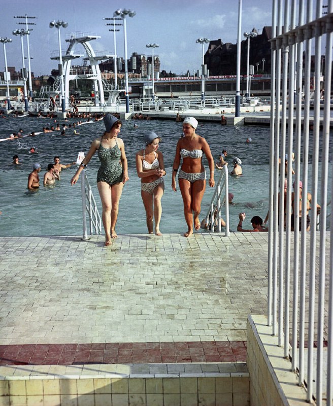 30 Посетители бассейна «Москва» на месте снесённого храма Христа Спасителя . Москва, СССР, 1961 год