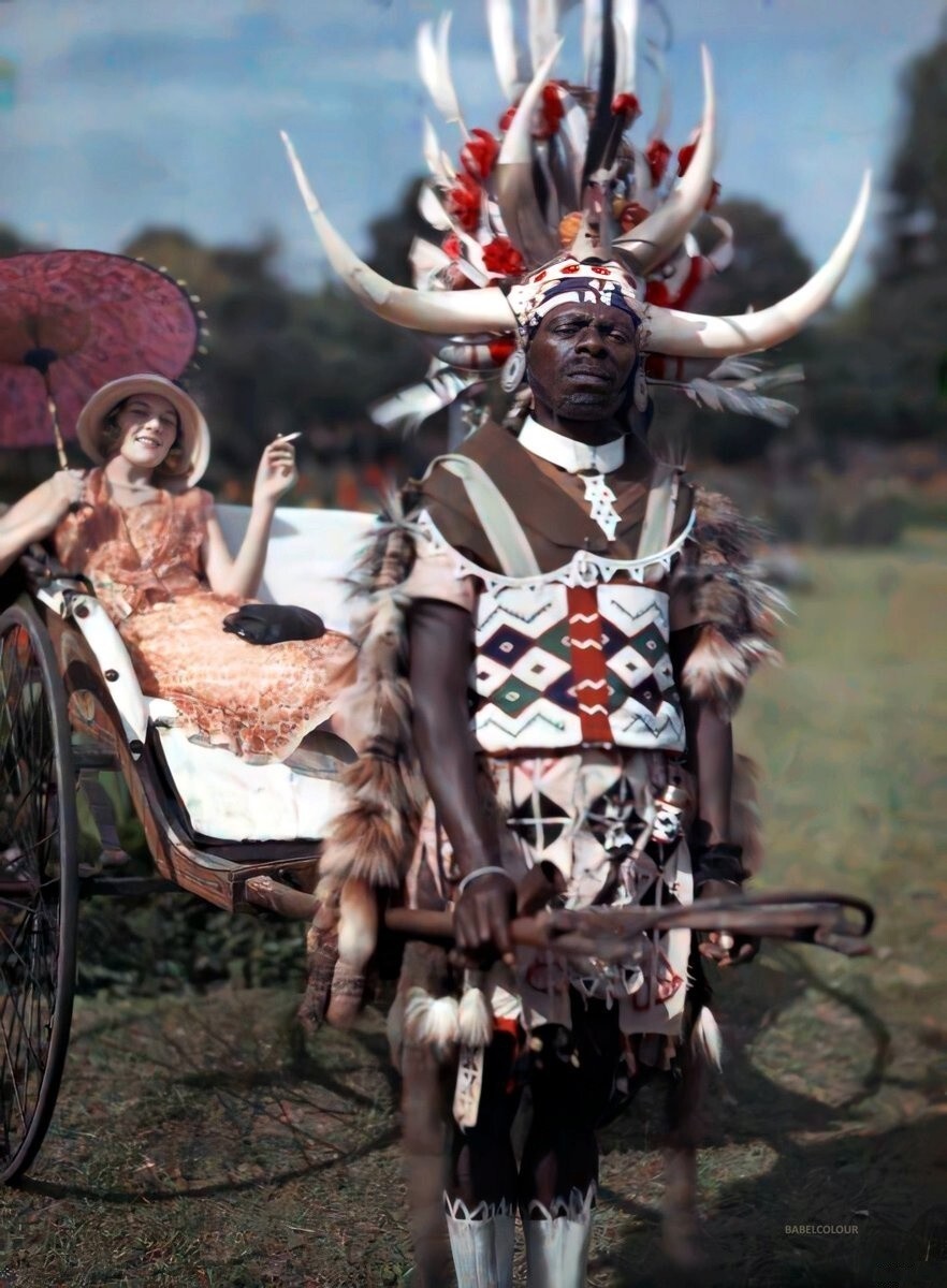 28 Зулус-рикша за работой. Дурбан. Южно-Африканский Союз. Доминион Британской империи. 1930