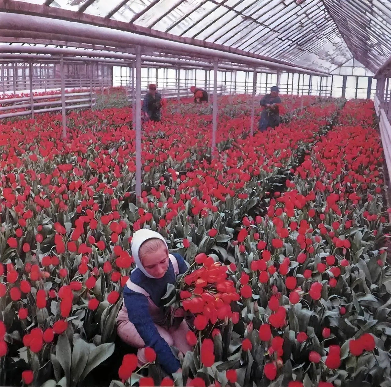 35 В теплице совхоза "Декоративные культуры", Город Нальчик, Кабардино-Балкарская АССР, 1980 год