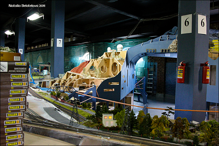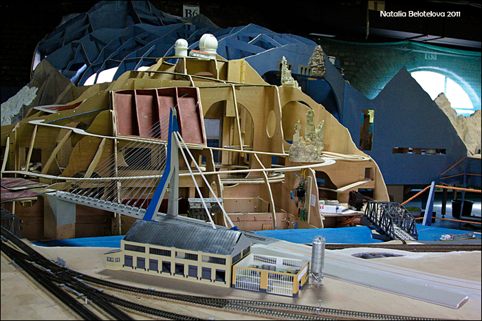 Для обслуживания макета в нем предусмотрены люки (их можно увидеть на недоделанной части - они раскрашены в красный цвет). Также в макет встроены специальные пылесосы для очистки его от пыли.