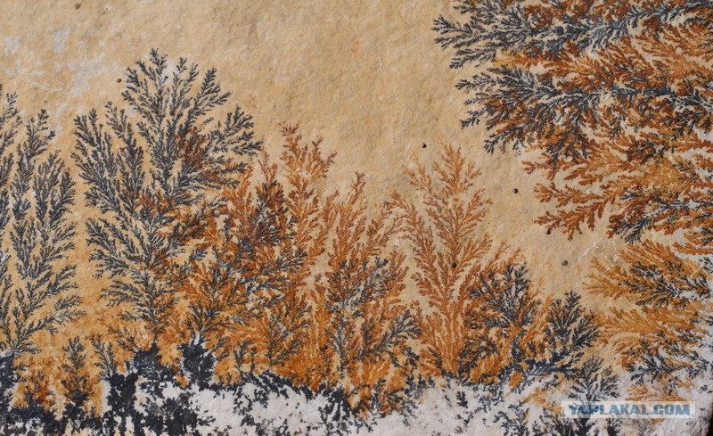 Уже несколько лет храню кусочек стены ( Плоская плитка 15 x 9см ), который привезла знакомая немка Астрид из города Киль. Похоже, что он долго лежал в сыром месте. Мне было жалко, что кроме меня и моих знакомых это чудо ни кто не видит. Хотел было отдать его в музей минералогии (на Ленинском проспекте), но потом заела жаба, и я его оставил. Время от времени достаю ее из коробочки и рассматриваю. Местами видятся пейзажи и зверюшки. Хочу и вам показать: